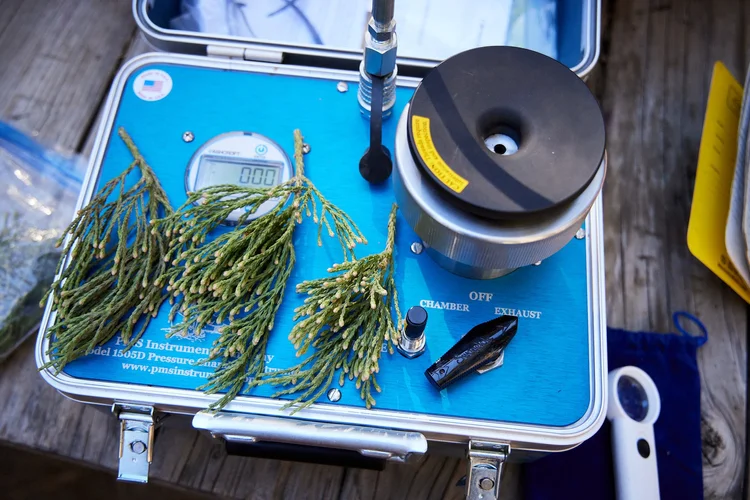 Pressure chamber used for measuring tree stress. Photo by Anthony Ambrose.