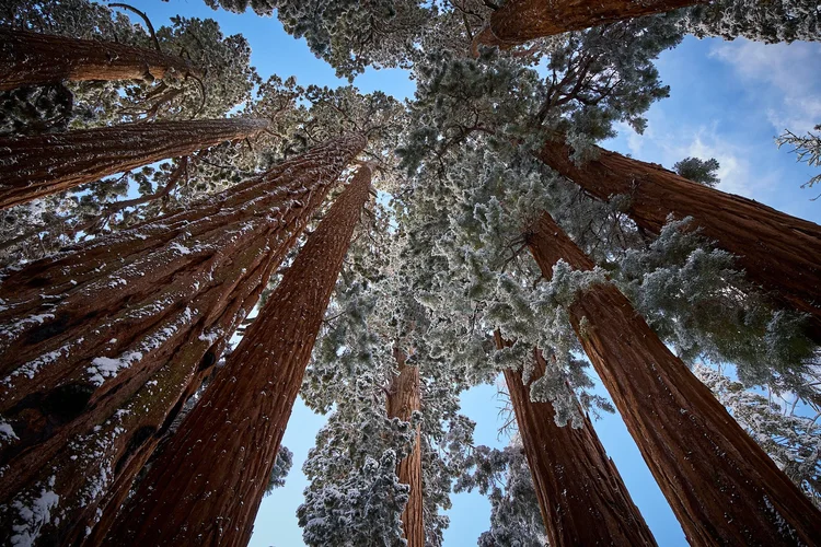 Giant sequoias in the snow. Giant Forest, Sequoia National Park. Photo by Wendy Baxter.